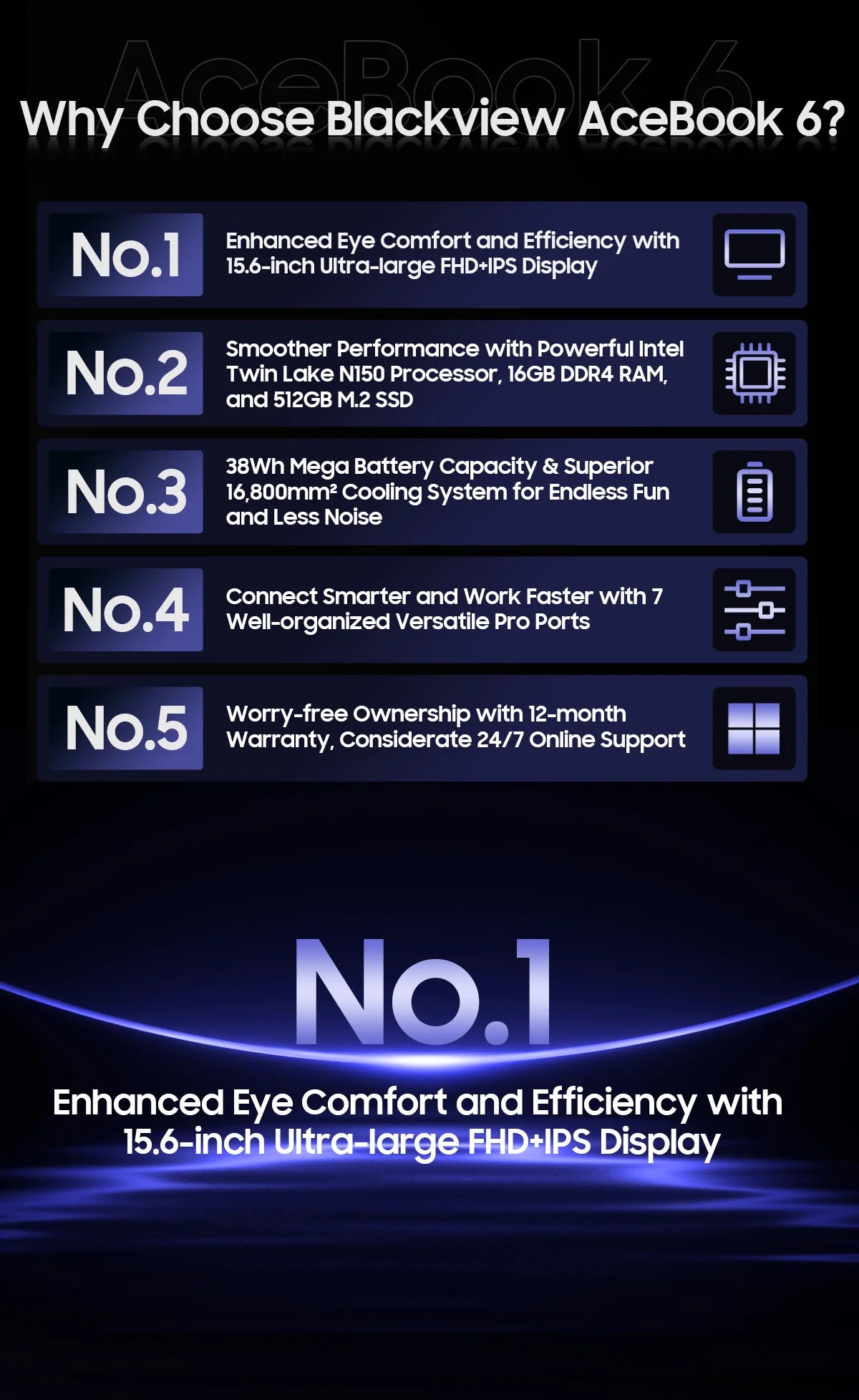 Blackview AceBook 6 Intel Twin Lake N150 15.6 Inch Laptop 16GB DDR4 512GB SSD Windows 11 Home 36Wh Battery